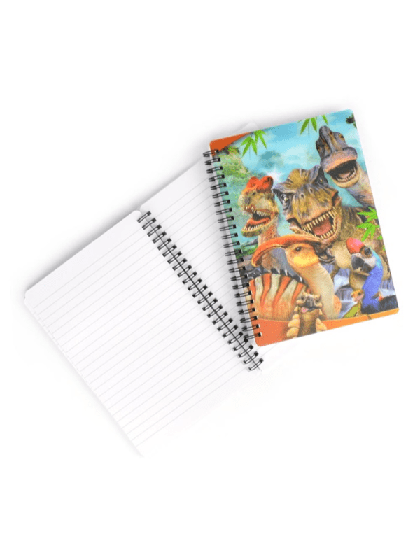3D Dinosaur Notesbog "Gør skolearbejdet eller tegnetiden endnu mere spændende med vores 3D Dinosaur Notesbog! Denne seje notesbog har en imponerende 3D-effekt på forsiden, der fremviser en realistisk og imponerende dinosaur. Det 3D-billede fanger vir