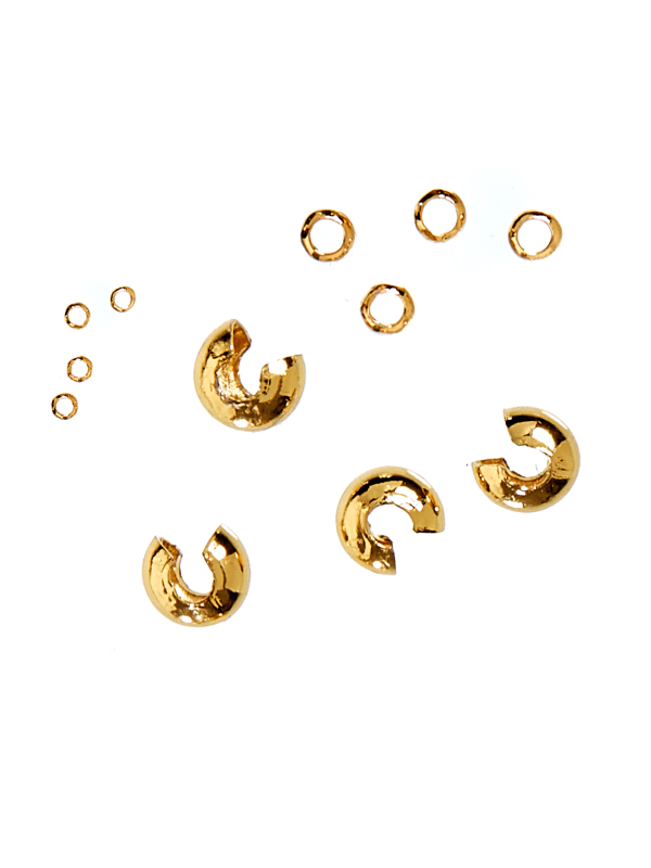 me&my BOX Wireklemmer Og Knudeskjulere 12 Stk. De fineste 18 karat guldbelagte wireklemmer og knudeskjulere fra me&my BOX. Wireklemmener benyttes til at klemme en wire fast, når man for eksempel har lavet et perlearmbånd eller halskæde. Knudeskjulerr kan