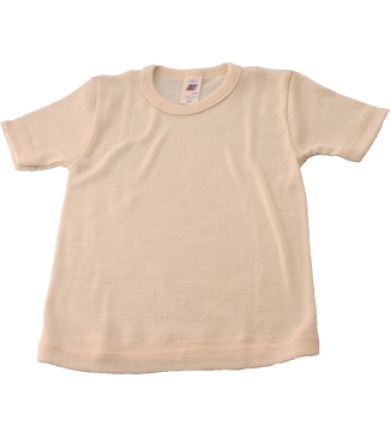 Super blød undertrøje med korte ærmer i naturfarvet 70% uld(økologisk) og 30% silke. Dejlig varm og ekstra blød. Kan bruges under vintertøjet, som undertøj, eller natbluse.